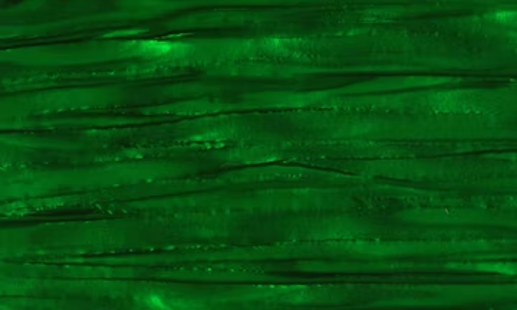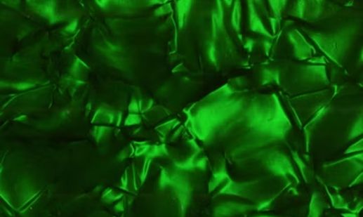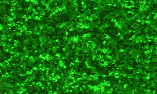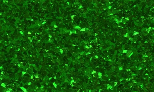 Grüne, glitzernde Folie mit kleinen zerbrochenen Glasstückchen unter der Deckschicht