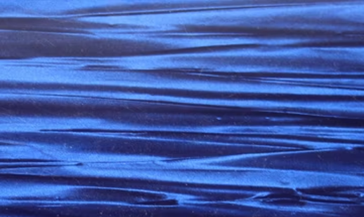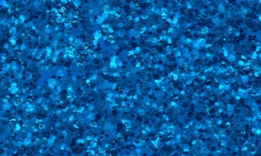 Blaue, glitzernde Folie mit kleinen zerbrochenen Glasstückchen unter der Deckschicht