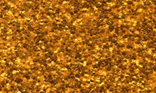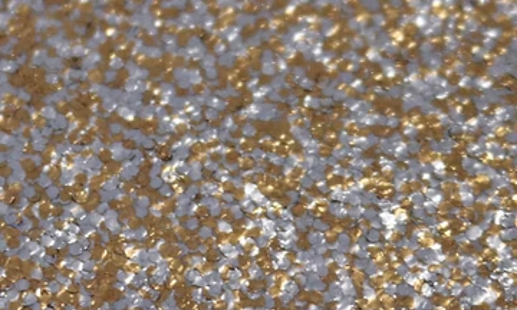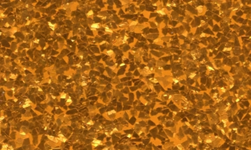 Goldene, glitzernde Folie mit kleinen zerbrochenen Glasstückchen unter der Deckschicht