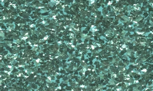 Türkis, glitzernde Folie mit kleinen zerbrochenen Glasstückchen unter der Deckschicht