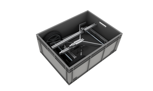 Für einen sicheren Transport kann das Fahrgestell ohne grossen Aufwand zusammengeklappt, oder komplett zerlegt werden. In den passenden Transportkisten sind diese sogar stapelbar.