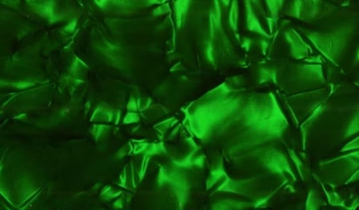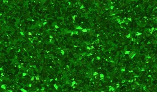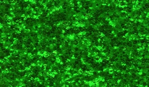 Grüne, glitzernde Folie mit kleinen zerbrochenen Glasstückchen unter der Deckschicht