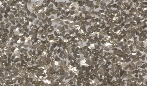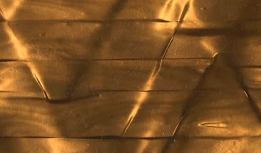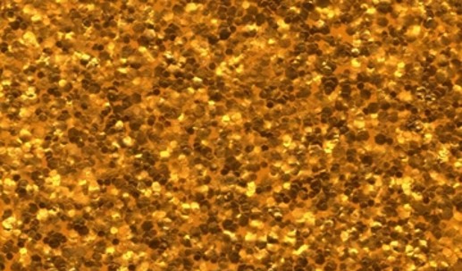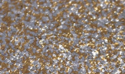 Goldene, glitzernde Folie mit kleinen zerbrochenen Glasstückchen unter der Deckschicht