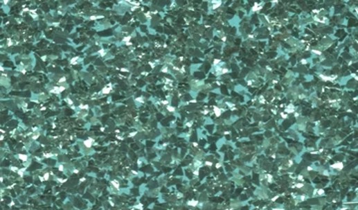 Türkis, glitzernde Folie mit kleinen zerbrochenen Glasstückchen unter der Deckschicht